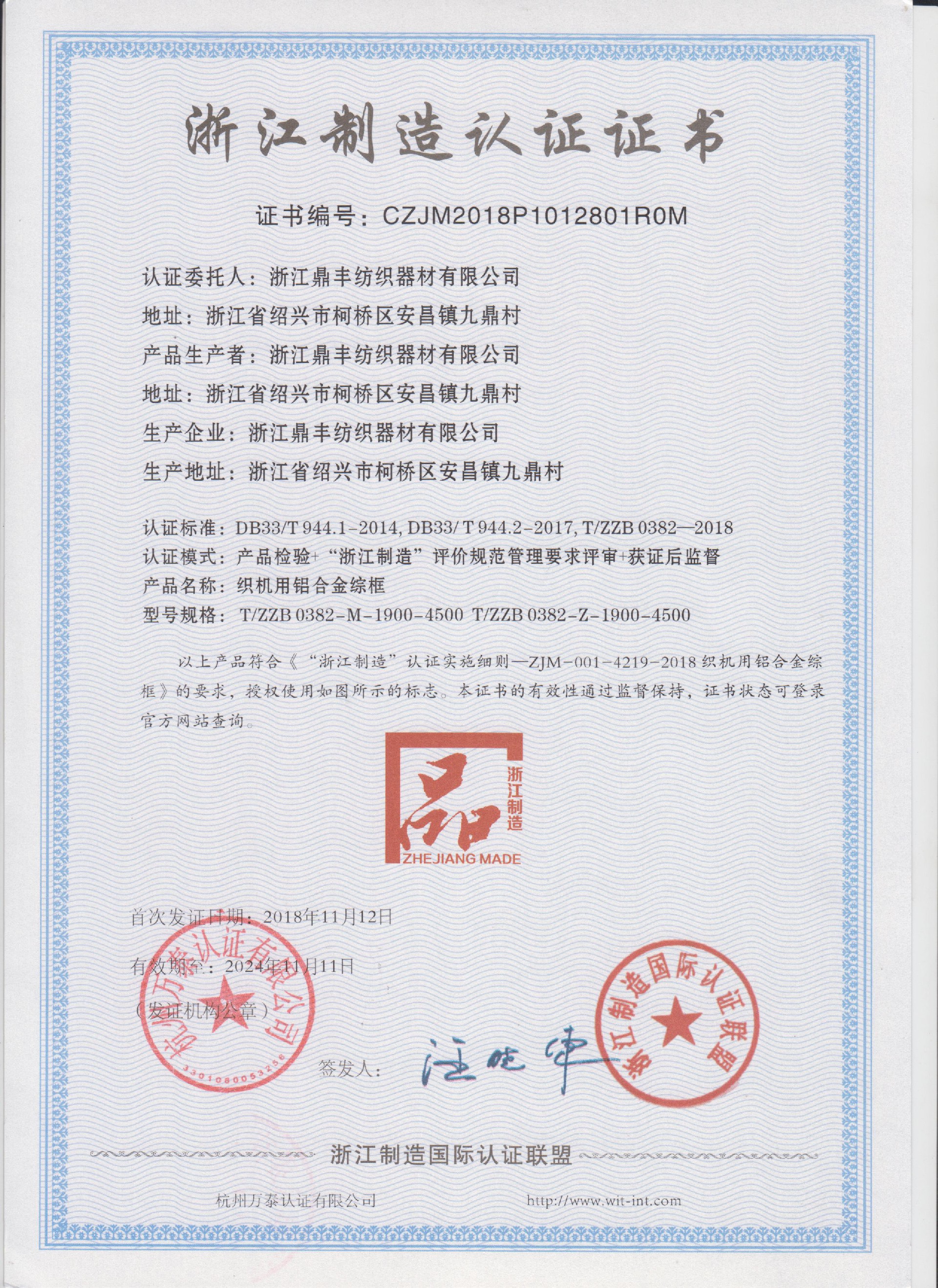浙江鼎豐紡織器材有限公司始建于1986年,是一家專業(yè)生產各類無梭織機用鋼筘:噴氣筘、噴水筘、劍桿筘、其他類型鋼筘;鋁合金綜框、鋼片綜、停經片、經軸、織軸、卷布輥等產品及配件的民營企業(yè)。